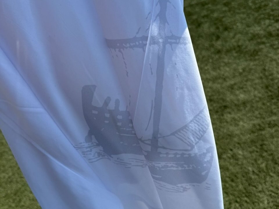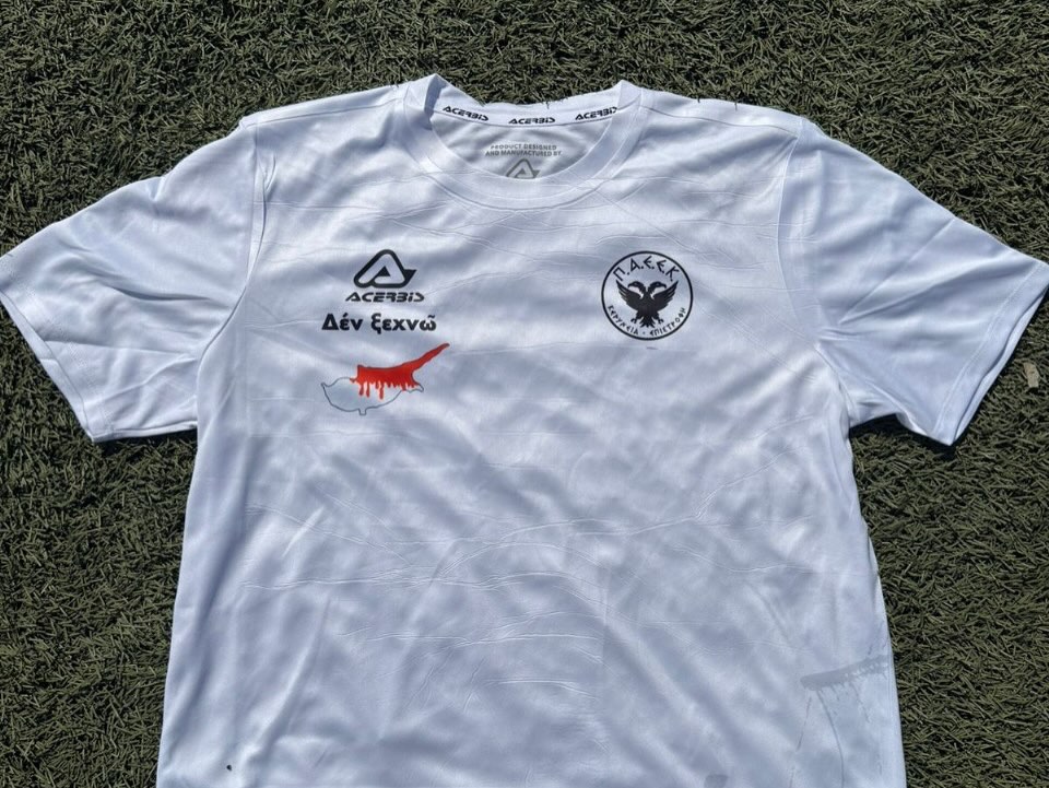 Στη φανέλα δεσπόζει το Καράβι της Κερύνειας που πλέει ξανά, αυτή τη φορά στα γήπεδα, μεταφέροντας το μήνυμα της αντοχής, της ελπίδας και της επιστροφής.